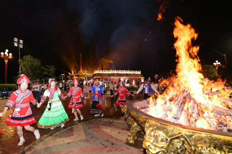 当地人民载歌载舞庆祝楚雄彝族火把节。楚雄州委宣传部供图