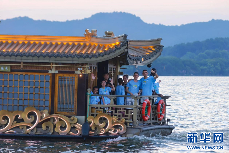 2025“汉语桥”全球外国人汉语大会故事会复赛及决赛将于7月6日至9日在杭州电子科技大学举办。晋级复赛的50名选手相聚杭州,以中文为桥讲述精彩故事。图为7月3日“汉语桥”选手在西湖参与文化体验。新华网发