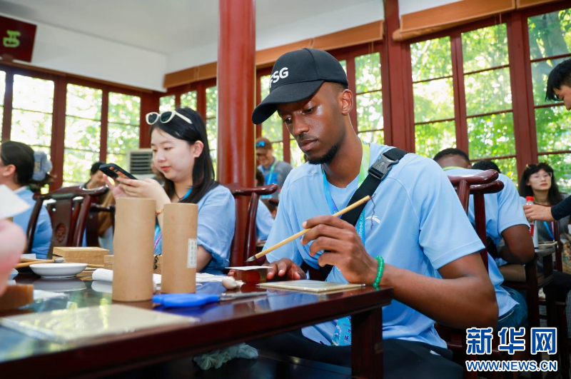 2025“汉语桥”全球外国人汉语大会故事会复赛及决赛将于7月6日至9日在杭州电子科技大学举办。晋级复赛的50名选手相聚杭州,以中文为桥讲述精彩故事。图为7月3日“汉语桥”选手在西泠印社进行文化体验。新华网发pagebreak