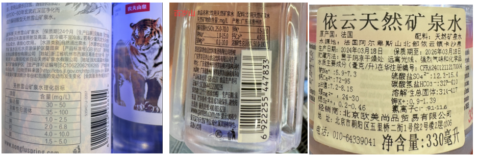 几款矿泉水的标签上,标注着钾、钠、钙、镁、锶、偏硅酸等理化指标。“除了水源、微生物、污染物等方面的要求,矿泉水有7个界限指标,锂、锶、锌、偏硅酸、硒、游离二氧化碳或溶解性总固体至少要有一项指标符合规定的界限值。”北京中医药医养协会水医学专委会会长赵飞虹介绍,只含有一项达到界限指标是单一型矿泉水,含有两项或两项以上达到界限指标要求的叫混合型矿泉水。