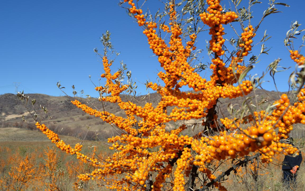 沙棘,是全球公认的经济型防护植物,被联合国环境开发署誉为生态建设领域的先锋树种。以其耐寒、耐旱、耐盐碱的特性,在生态修复方面有着重要作用。