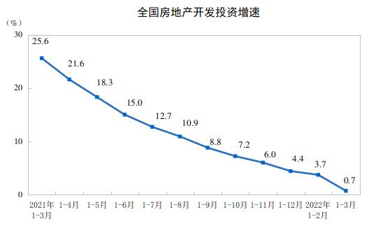1—3月份,全國房地產(chǎn)開發(fā)投資27765億元,同比增長0.7%;其中,住宅投資20761億元,增長0.7%。