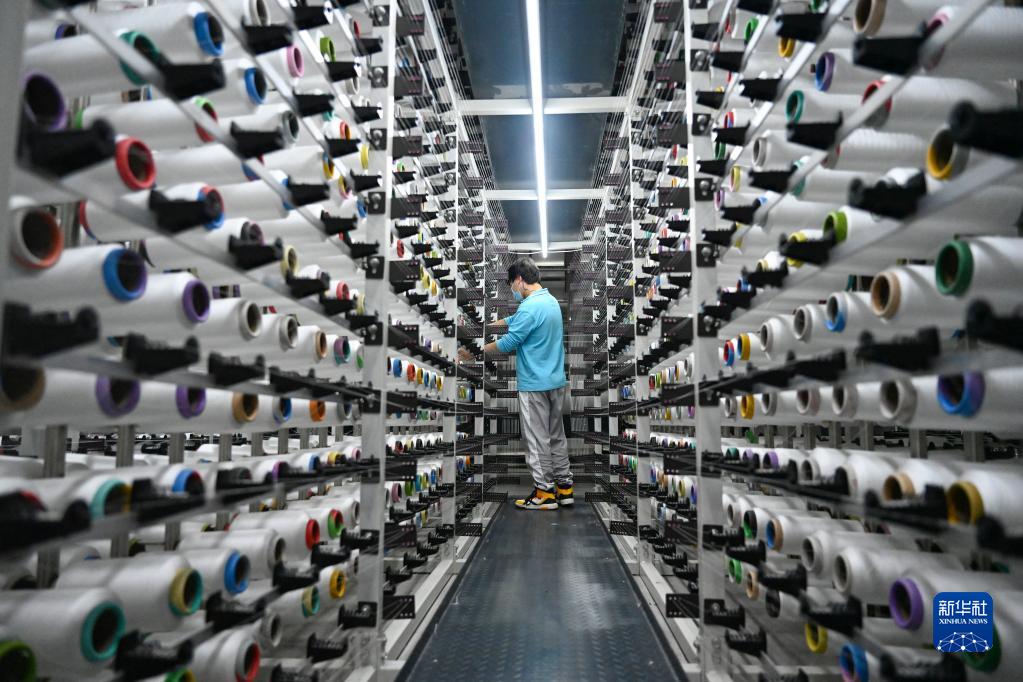4月12日,在福建泉州石獅市的一家紡織企業,工人在工廠里忙碌。新華社發(周義攝)