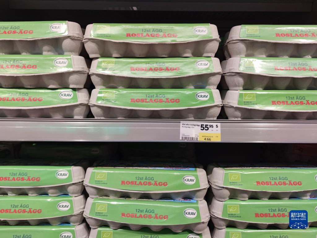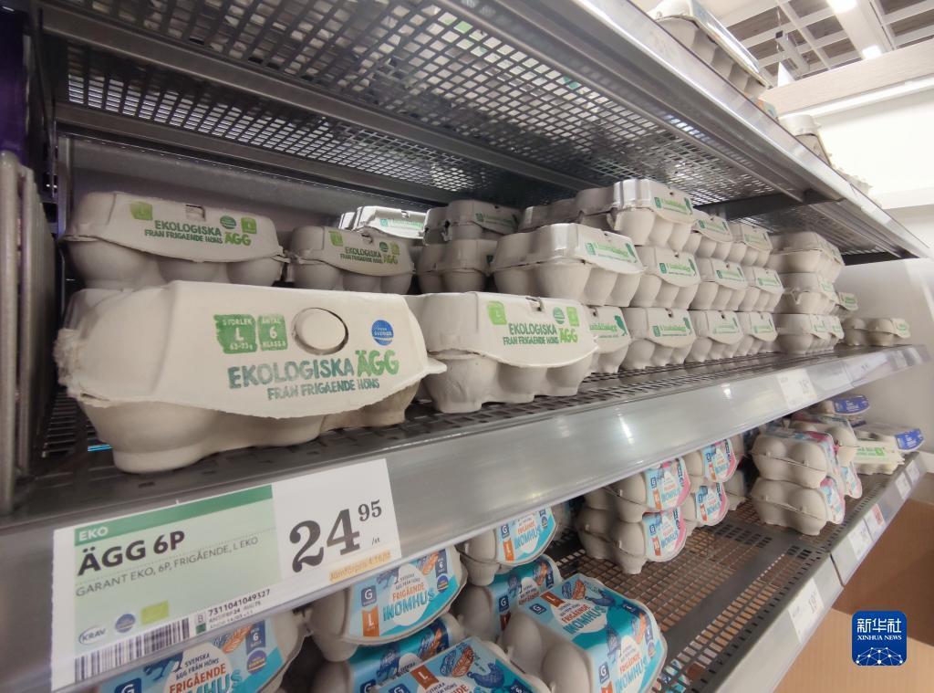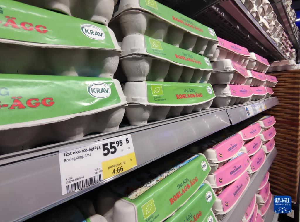 這是4月14日在瑞典斯德哥爾摩一家超市內(nèi)拍攝的雞蛋。 新華社發(fā)(魏學(xué)超攝)
