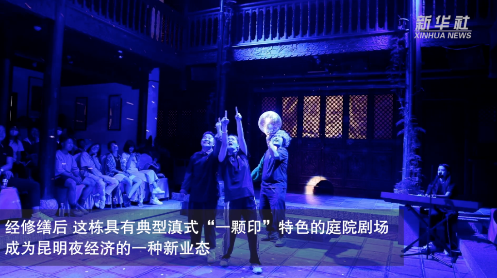 云南昆明的“網(wǎng)紅夜市”南強街,不僅有琳瑯滿目的云南各色風味小吃,還有“南強街八十八號”這一具有滇式“一顆印”特色的小劇場,演出極具云南特色的滇劇、折子戲、即興喜劇等,逐漸成為市民夜生活的新選擇,為夜經(jīng)濟的發(fā)展注入新活力。