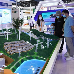 9月3日,觀眾在國家會議中心了解水風光儲多能互補綠色能源技術。2022年中國國際服務貿易交易會于8月31日至9月5日在位于北京的國家會議中心和首鋼園區舉辦,今年更加突出“雙碳”主題。新華社記者 金皓原 攝