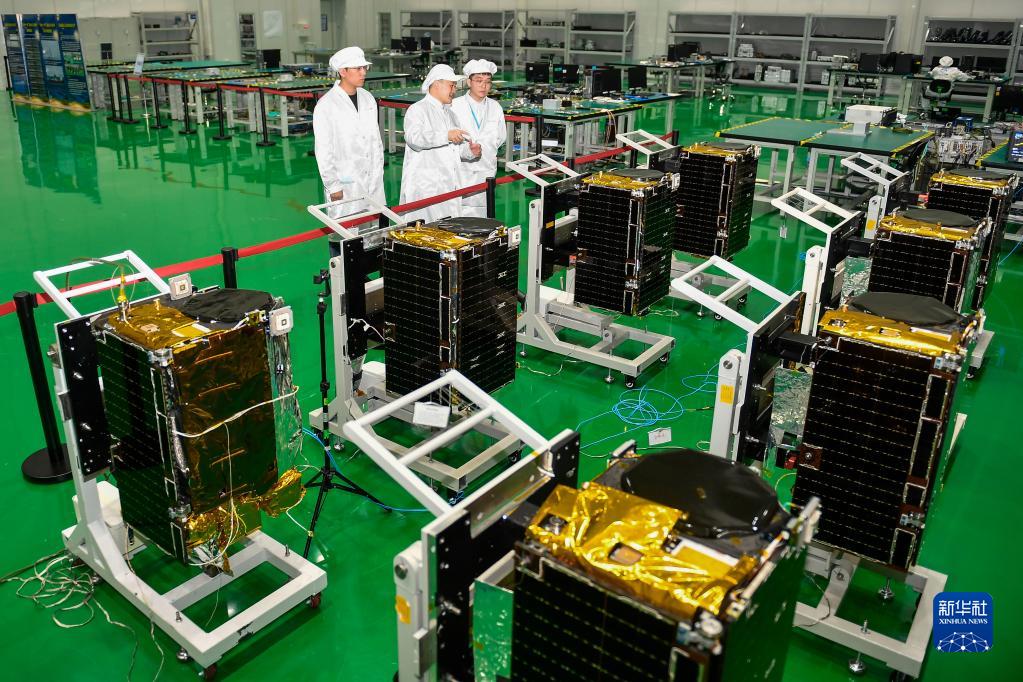 在吉林長春,長光衛星技術股份有限公司科研人員在衛星總裝測試大廳進行相關測試工作 (2022年10月17日攝)。新華社記者 許暢 攝
