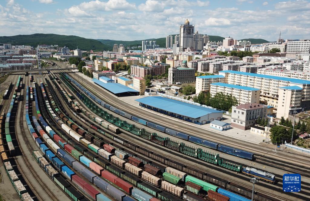 2022年6月8日拍攝的中國(黑龍江)自由貿易試驗區綏芬河片區局部(無人機照片)。新華社記者 王建威 攝