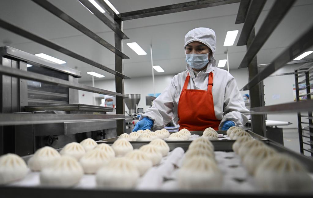 在天津利達糧油有限公司的速凍面食生產車間,多條食品深加工的生產線同時運行,顯示大屏實時播放著蒸制、速凍等生產情況,自動化產線的加持下,速凍面食一天的綜合產量較之前提高了3倍。