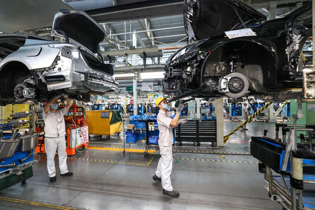 工人在比亞迪襄陽(yáng)產(chǎn)業(yè)園里忙碌。新華社記者肖藝九 攝