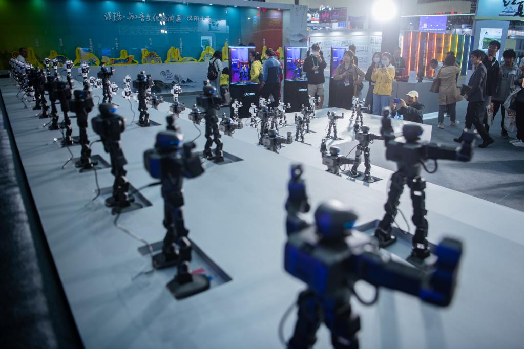 在音樂驛站表演現場,幾十個小型音樂機器人伴著荊楚特色音樂歡快起舞、動感十足,同樣情緒激昂的還有展位負責人蔡澤鋒。“如此熱鬧擁擠的場面令人激動,作為參展商,我們明顯感到了經濟復蘇的活力。”他說。