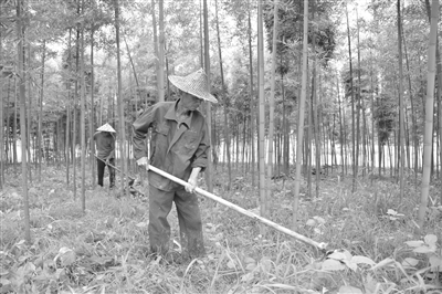 農戶在建甌市東峰鎮一處竹林里鋤草。記者張華迎 攝