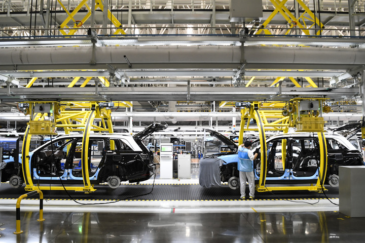 这是6月7日拍摄的位于重庆市两江新区的赛力斯汽车超级工厂智能化生产作业现场。新华社记者 王全超 摄