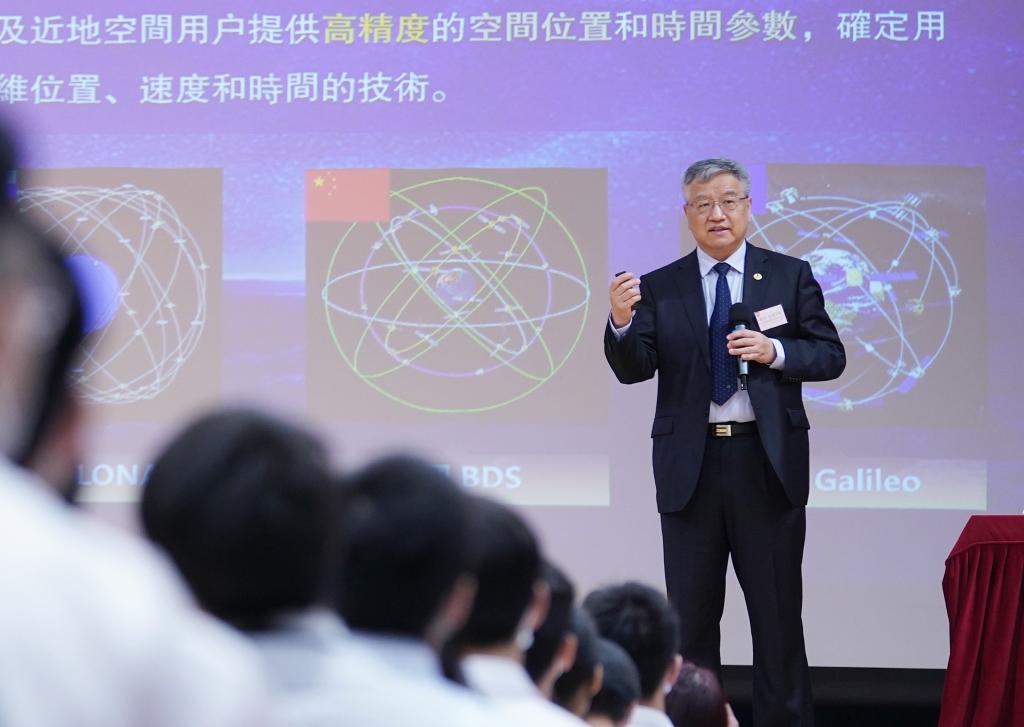 6月25日,在香港保良局甲子何玉清中學,北斗三號衛星首席總設計師謝軍為學生講演。新華社記者 王申 攝