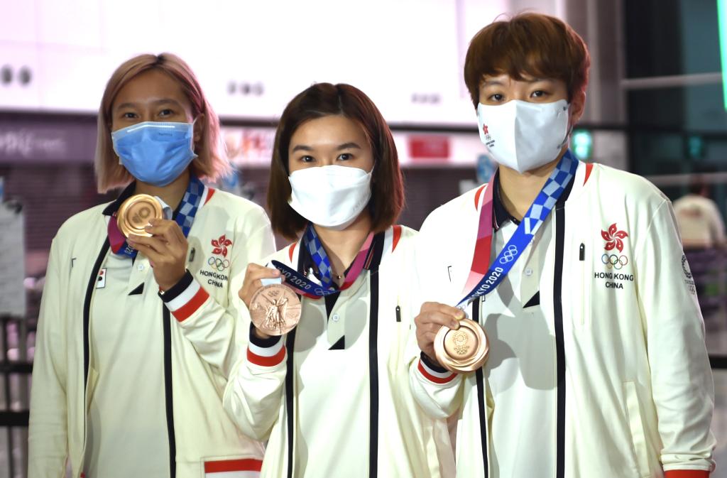 新華社香港8月9日電(記者查文曄、韋驊、黃茜恬)8日凌晨,奪得東京奧運(yùn)乒乓球女團(tuán)銅牌的3名女將蘇慧音、李皓晴、杜凱琹凱旋回港。由于要在酒店隔離,她們來不及回家吃飯。不過,杜凱琹的父母貼心地烹制了女兒最愛吃的餃子和老火湯,用餐盒送到酒店并分給隊(duì)友,餐盒外的貼紙上寫滿感謝與鼓勵(lì)的話語。