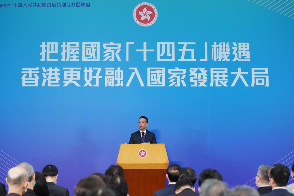 大家上午好。今年5月,林鄭月娥行政長官給全國政協副主席、國務院港澳辦主任夏寶龍寫信,請求中央派人赴香港給特區政府、社會各界講解國家“十四五”規劃。中央高度重視行政長官的這一請求,委派我和國家發改委、科技部、人民銀行、國務院新聞辦的同事來香港,和各界朋友交流學習國家“十四五”規劃的心得體會,一同探討香港如何參與和對接國家戰略、如何在融入國家發展大局過程中實現更好發展。在此,請允許我代表本次宣講團對行政長官和特區政府的邀請表示感謝!并轉達夏寶龍主任對香港各界朋友們的問候!