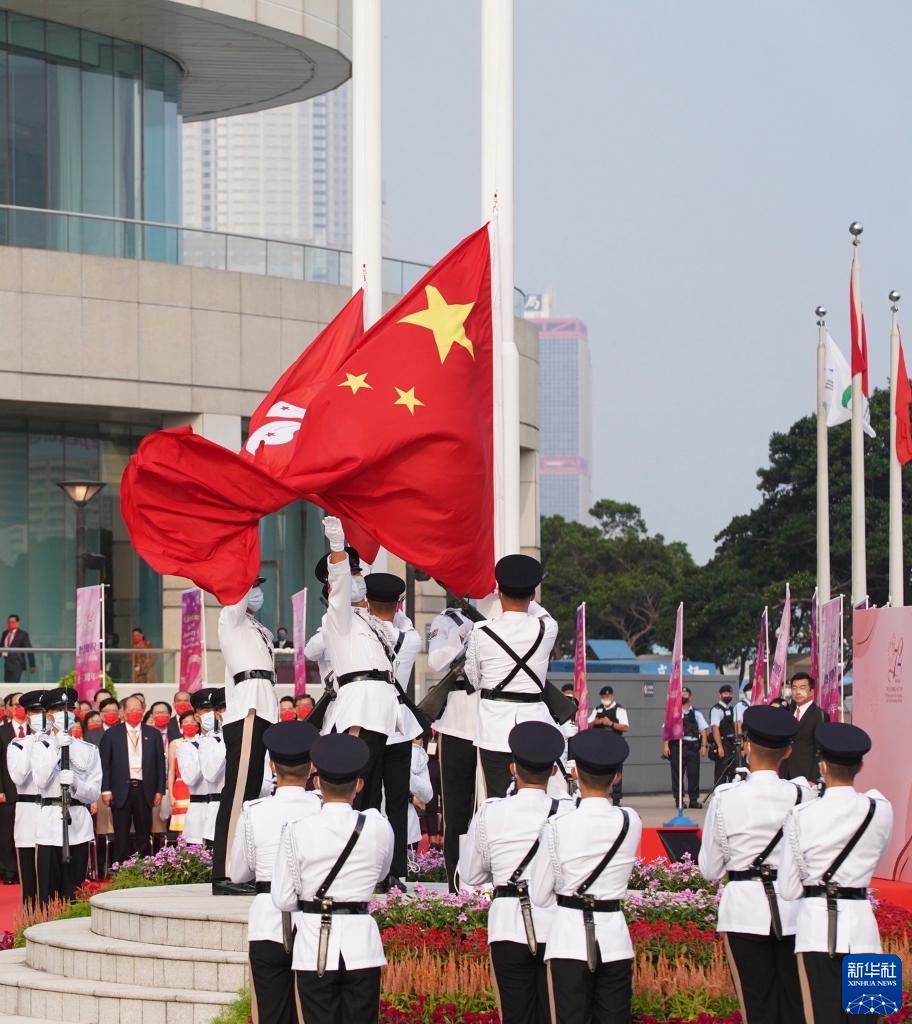10月1日,香港特區(qū)政府在金紫荊廣場舉行升旗儀式。新華社記者 呂小煒 攝