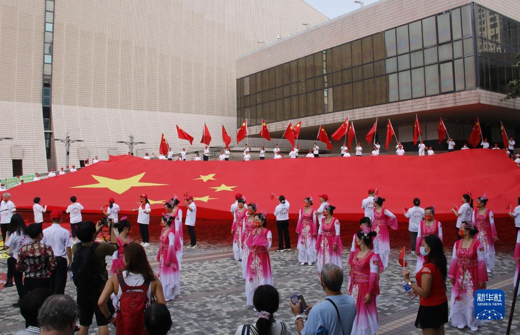 “今天是中華人民共和國成立72周年的喜慶日子,我們作為愛國愛港的香港市民社團(tuán),專門購置了這面巨幅國旗,為祖國獻(xiàn)禮。”“香江情·中國心”社團(tuán)會(huì)長李文烈說,此次慶祝活動(dòng)由數(shù)十位市民自發(fā)參與,有的擔(dān)任護(hù)旗手,有的擔(dān)任舞蹈演員,還有的擔(dān)任合唱隊(duì)員。