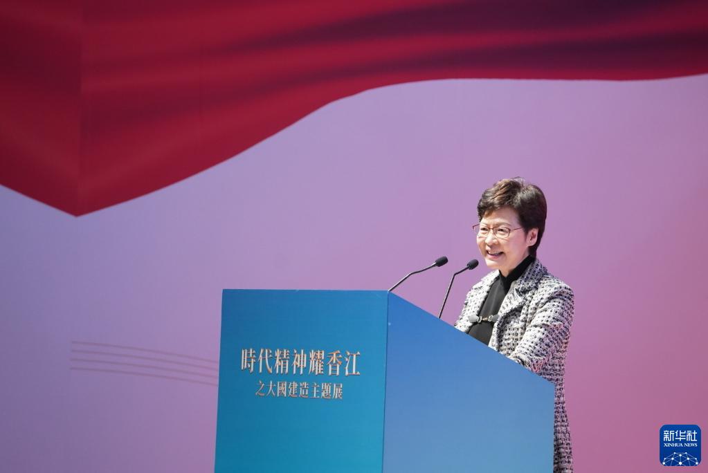 10月25日,香港特區行政長官林鄭月娥在展覽開幕式上致辭。新華社記者 呂小煒 攝