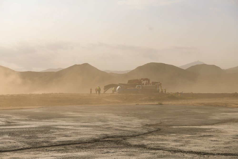 轉而連降暴雨,氣溫急轉直下,雨水和黃土和成泥漿灌進工人生活區的帳篷,行軍床和被褥漂在泥水里,但為了搶工期,建設者們仍在雨中夜以繼日奮戰。