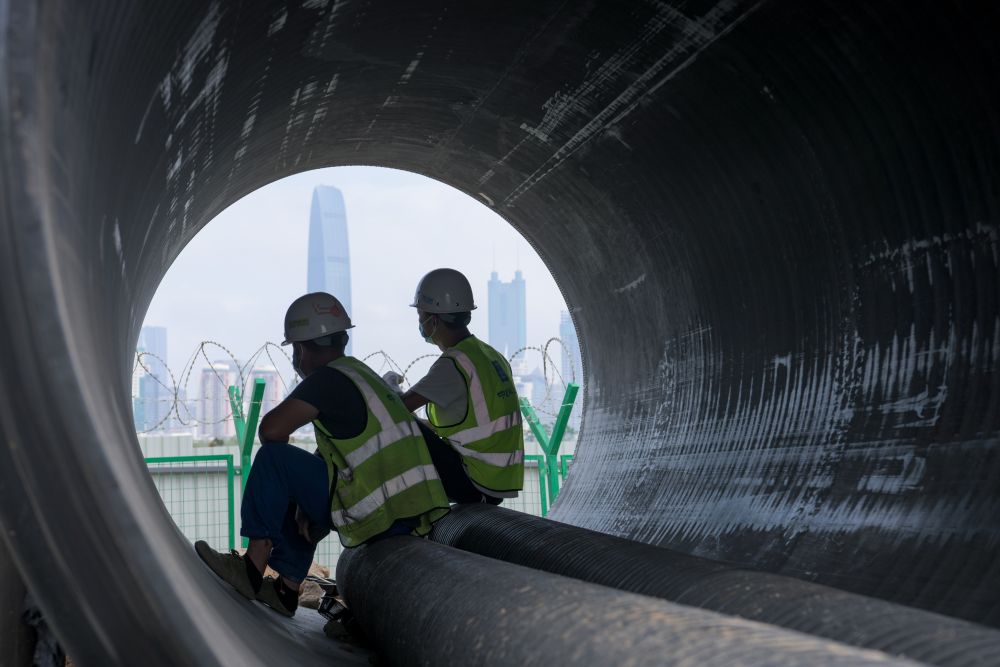3月6日清晨,我和同事洪澤華領命出發,作為見證者和記錄者,跟隨中建科工第一批200多名施工人員,迎著朝陽,從一座用7天時間搶建的鋼棧橋上,跨過深圳河,奔赴落馬洲。