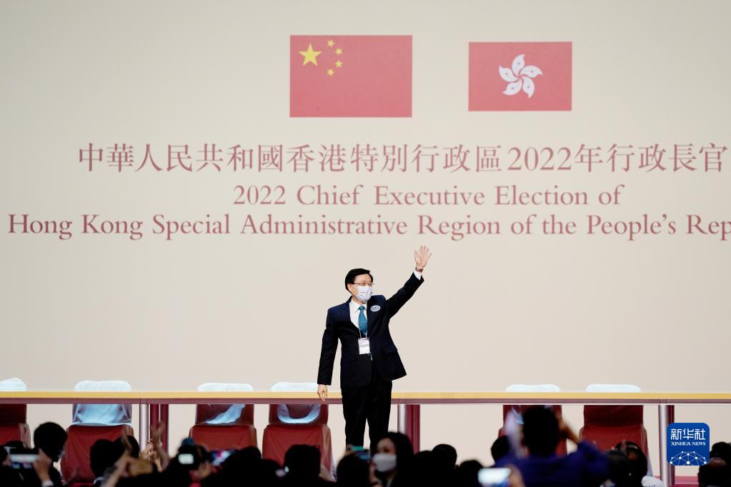 在當天舉行的香港特別行政區第六任行政長官選舉中,李家超高票當選第六任行政長官人選。這是完善香港選舉制度后的首次行政長官選舉,是有香港特色民主的又一次重要成功實踐。