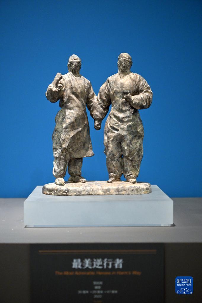這是展出的雕塑作品《最美逆行者》(6月24日攝)。 新華社記者 李鑫 攝