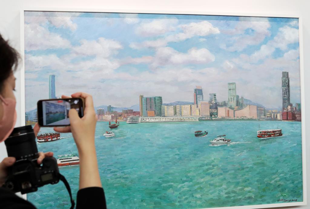 此外,表現粵港澳大灣區建設成就的港珠澳大橋、獅子山下傳統與現代結合的建筑、香港城市的美麗風景、朵朵綻放的紫荊花……包含這些與港人生活密切相關元素的畫作也是本次展覽的一大亮點。