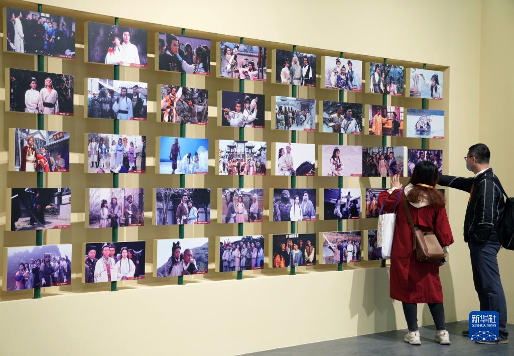 10月28日,觀眾在參觀由金庸武俠小說改編的影視劇劇照。新華社記者 劉穎 攝