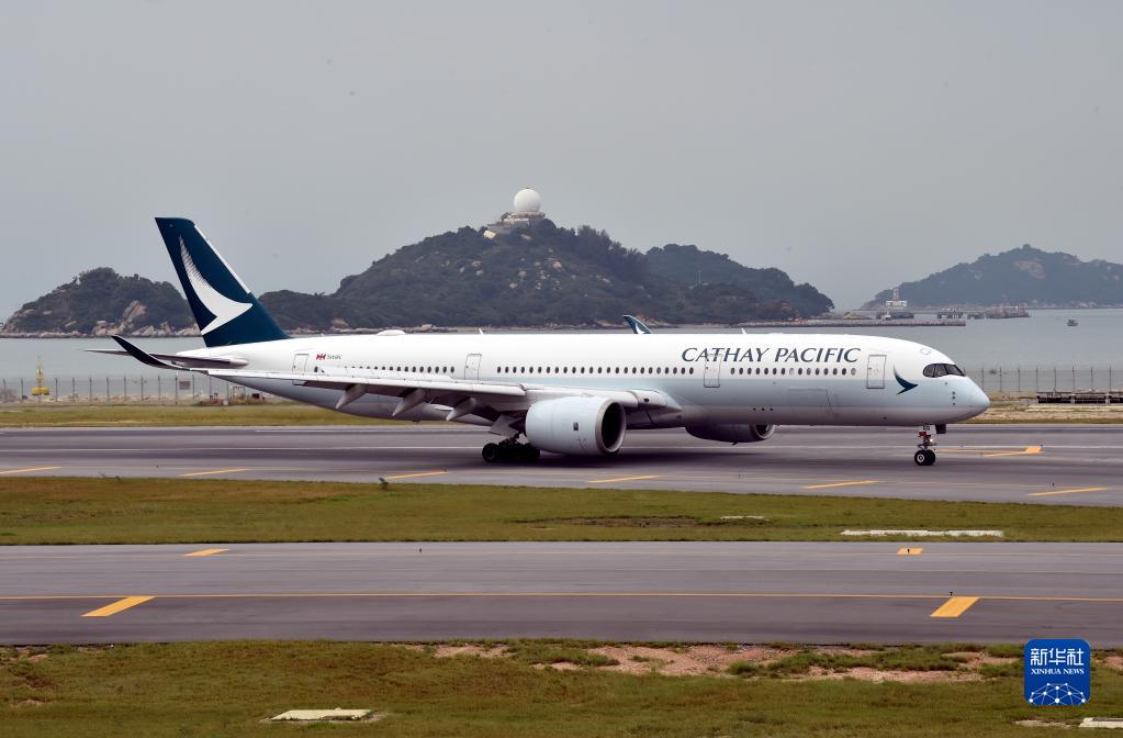11月25日,一架客機降落香港國際機場第三跑道。新華社記者 盧炳輝 攝