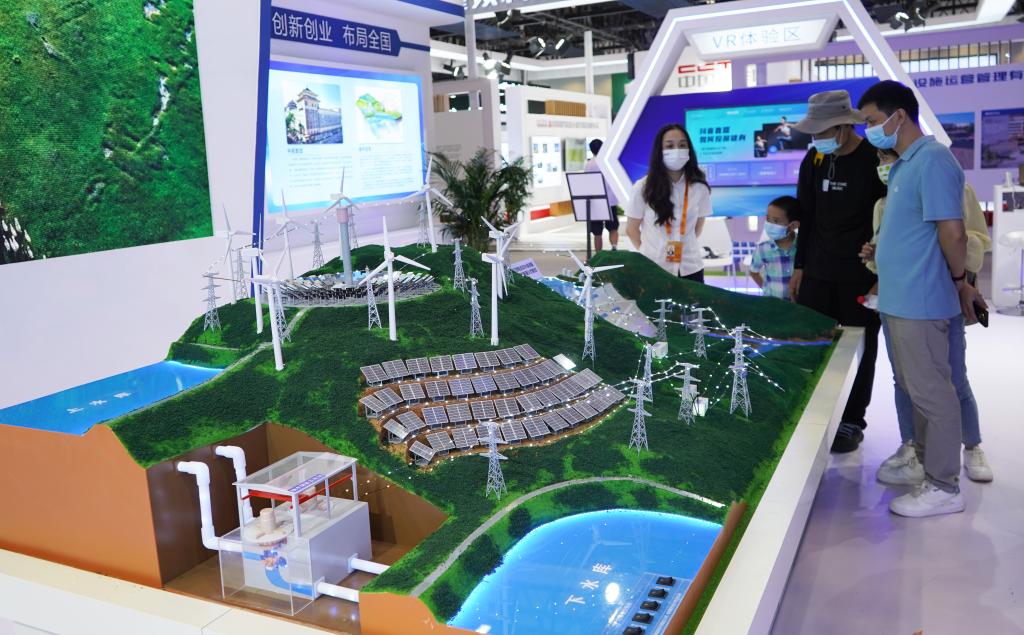 9月3日,觀眾在國家會議中心了解水風光儲多能互補綠色能源技術(shù)。2022年中國國際服務(wù)貿(mào)易交易會于8月31日至9月5日在位于北京的國家會議中心和首鋼園區(qū)舉辦,今年更加突出“雙碳”主題。新華社記者 金皓原 攝