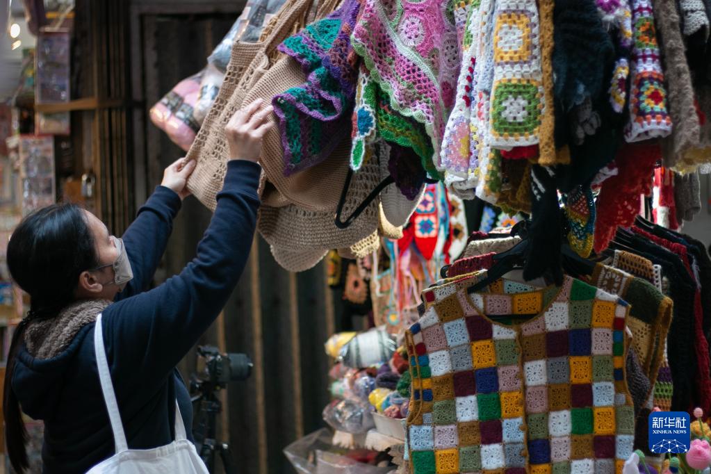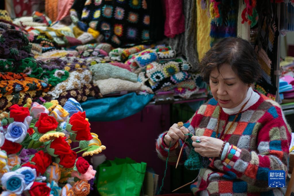 在香港灣仔,太原街露天市集有著超過80年的歷史。走進這條長約250米的小街,濃濃的生活氣息撲面而來。在街道兩旁眾多鐵皮攤位中,一間掛著琳瑯滿目毛衣毛線制品的攤位格外引人注目。