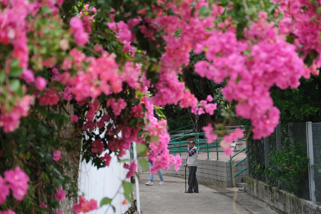 在香港香園圍村,85歲的萬秀平走在村里。新華社記者 王申 攝