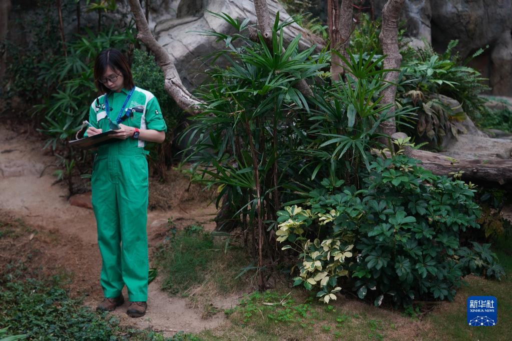 看著近距離互動的“盈盈”,“奶爸”梁家綸趕緊用手機相機捕捉一些特寫畫面。這名留著“爆炸頭”的護理員,還會為公園的媒體賬號提供內(nèi)容。