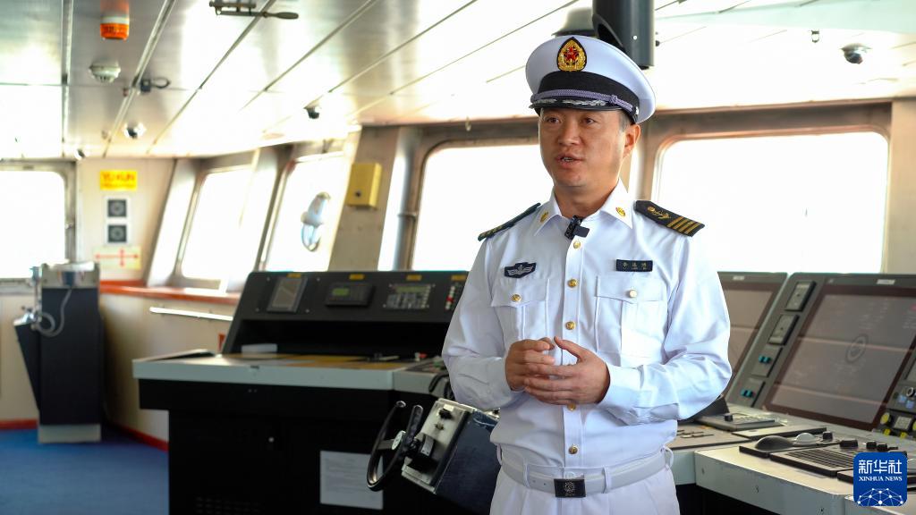11月24日,“育鯤”輪船長(zhǎng)李連博接受采訪。新華社記者 龍鏡伊 攝