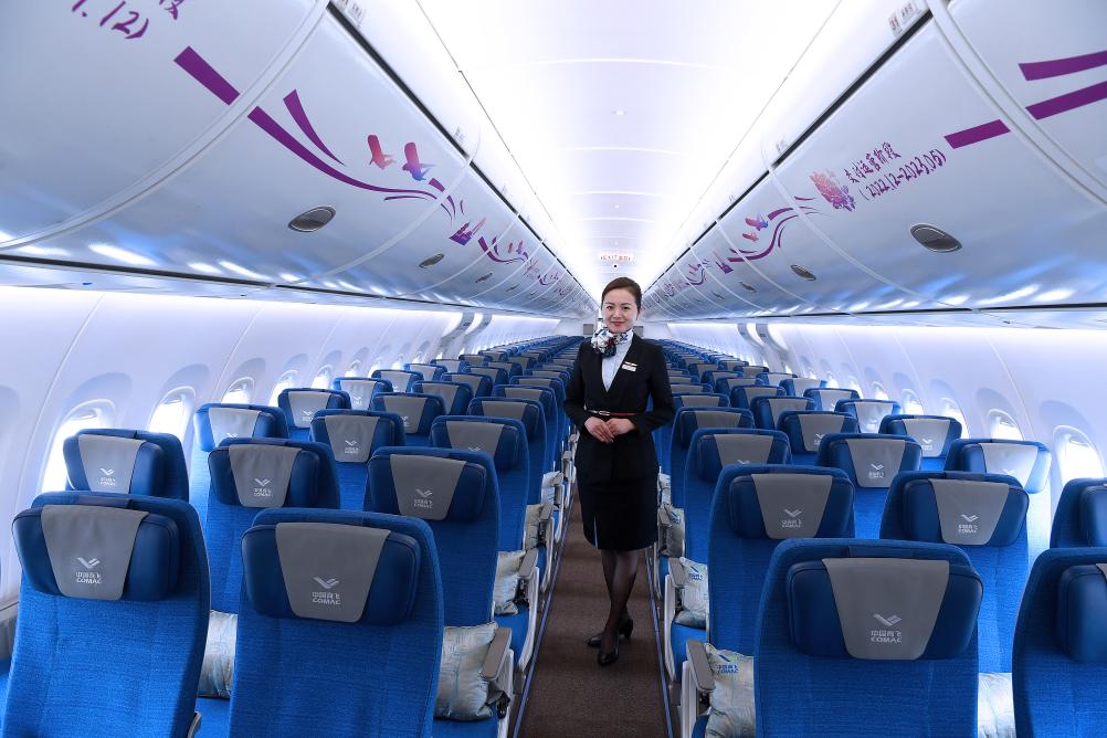 這是12月13日拍攝的C919飛機經濟艙。新華社記者 陳鐸 攝