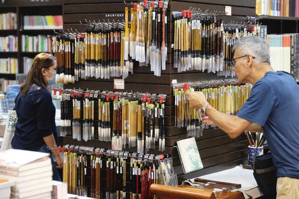 顧客在香港中華書局油麻地分局的文房四寶專區選購商品(11月3日攝)。新華社記者 王申 攝
