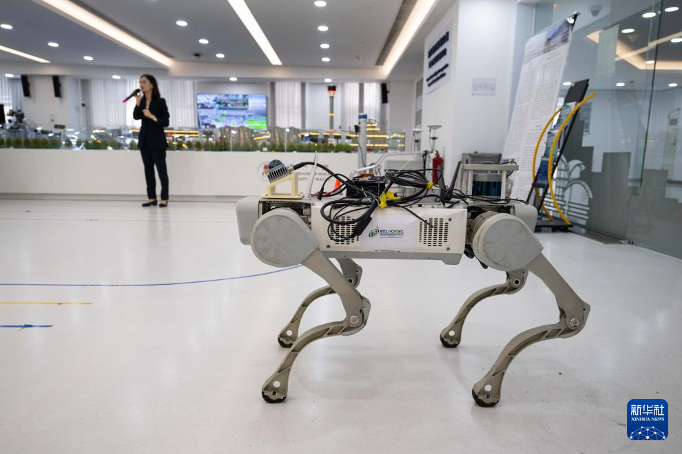 6月17日拍摄的用于勘察昏暗场景路面情况的机器狗。新华社记者 张金加 摄