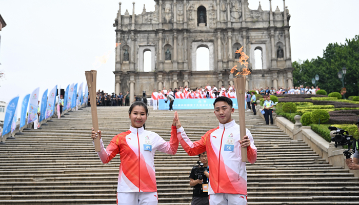 第十五屆全國運動會澳門賽區(qū)火炬?zhèn)鬟f活動2日舉行。作為澳門首位全運會獎牌得主,空手道運動員郭建恒擔任最后一棒火炬手。