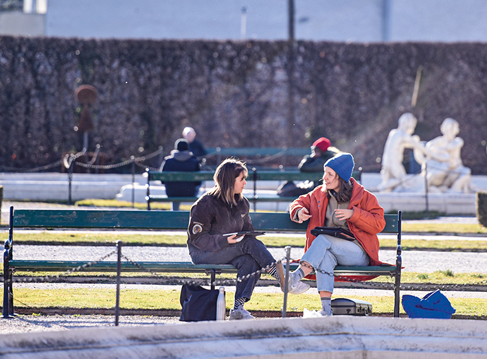 3月19日,人们在奥地利维也纳美景宫花园休闲