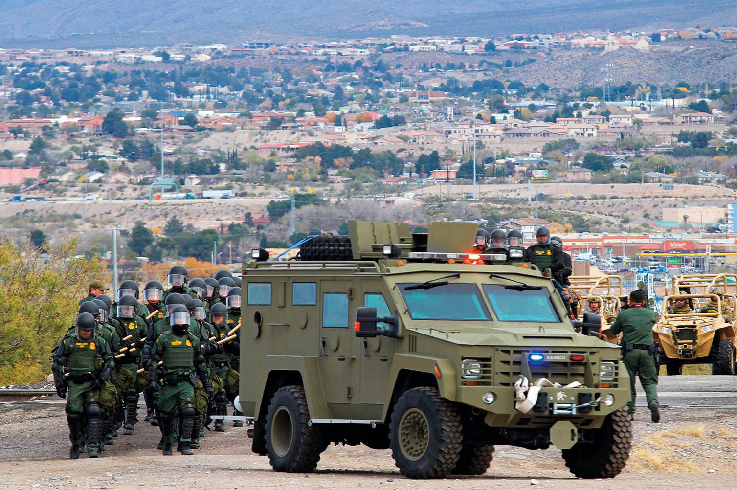 2018 年 11 月 30 日,美国边境巡逻人员在美国新墨西哥州美墨边境墙附近进行训练