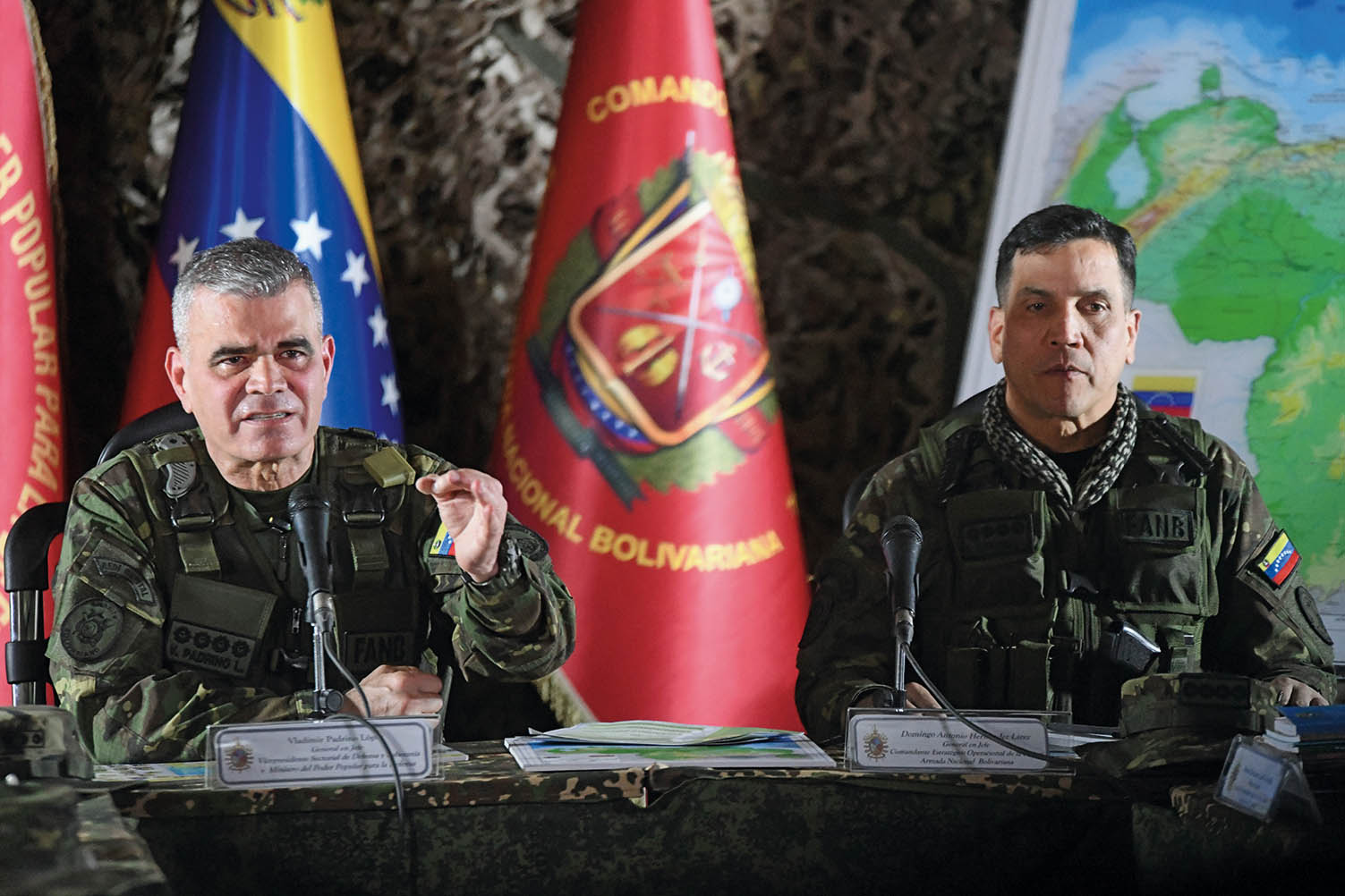 8 月 31 日,委内瑞拉国防部长帕德里诺·洛佩斯(左)在首都加拉加斯举行的新闻发布会上讲话