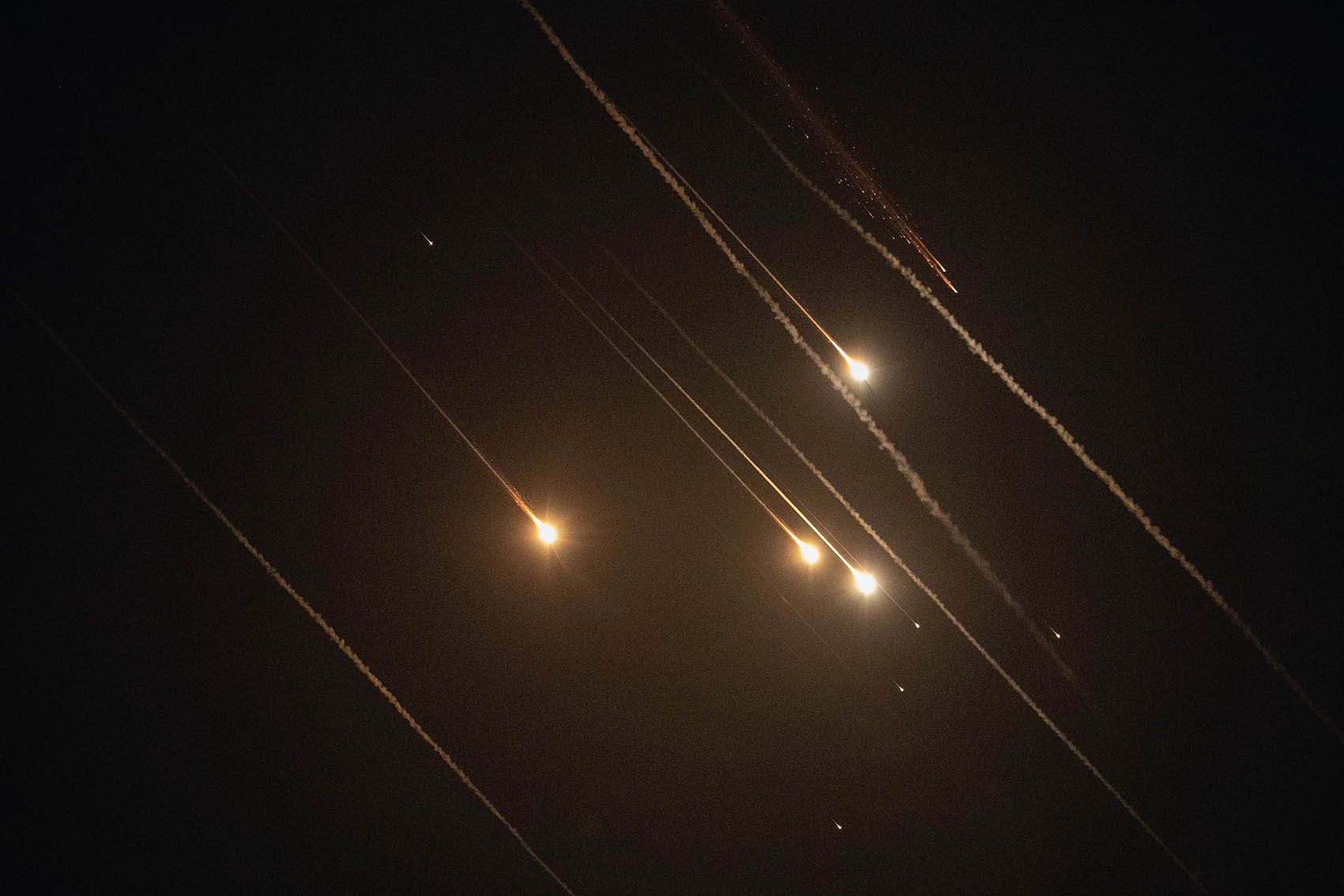 2024年10月1日,以军防空系统拦截的发射物从耶路撒冷上空飞过