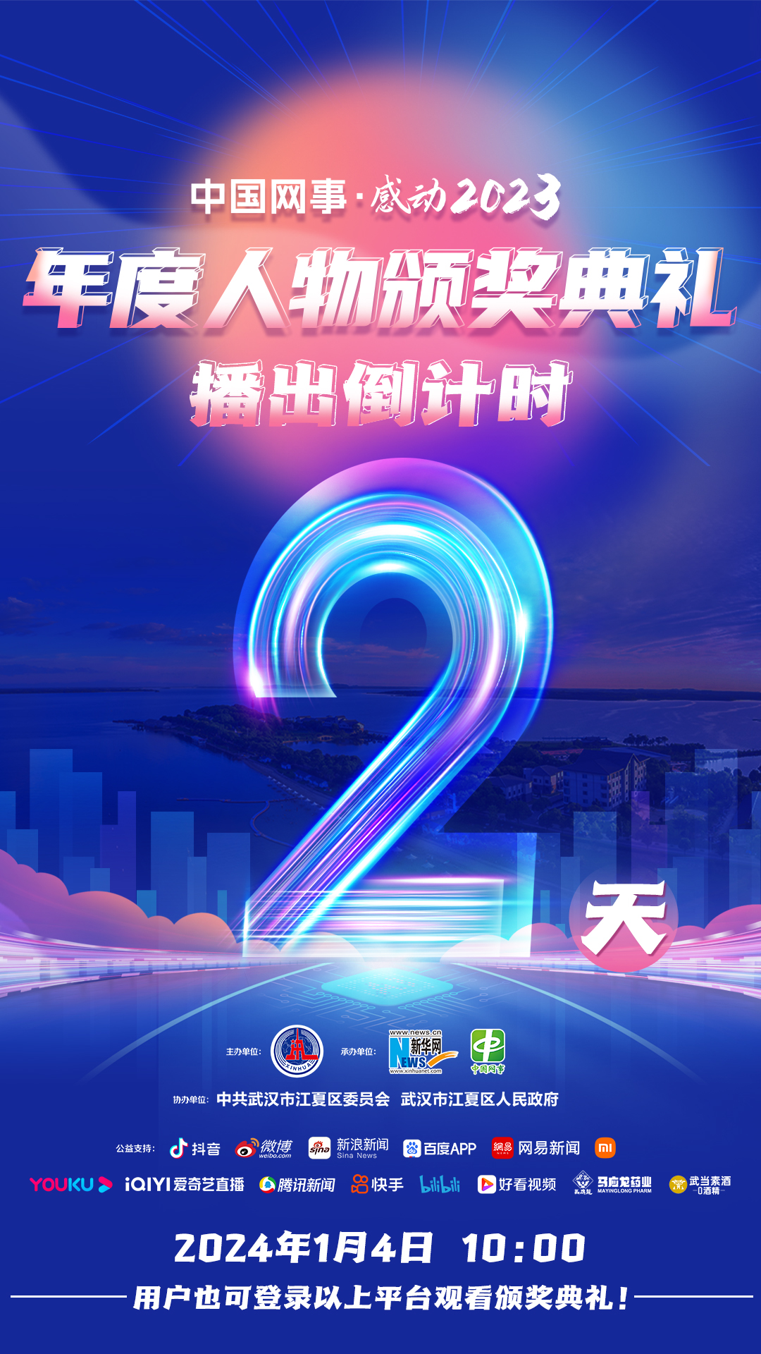由新华社主办的“中国网事·感动2023”年度人物颁奖典礼将于2024年1月4日上午10:00全网播出。颁奖典礼由中共武汉市江夏区委员会、武汉市江夏区人民政府协办,在美丽的梁子湖畔举行。