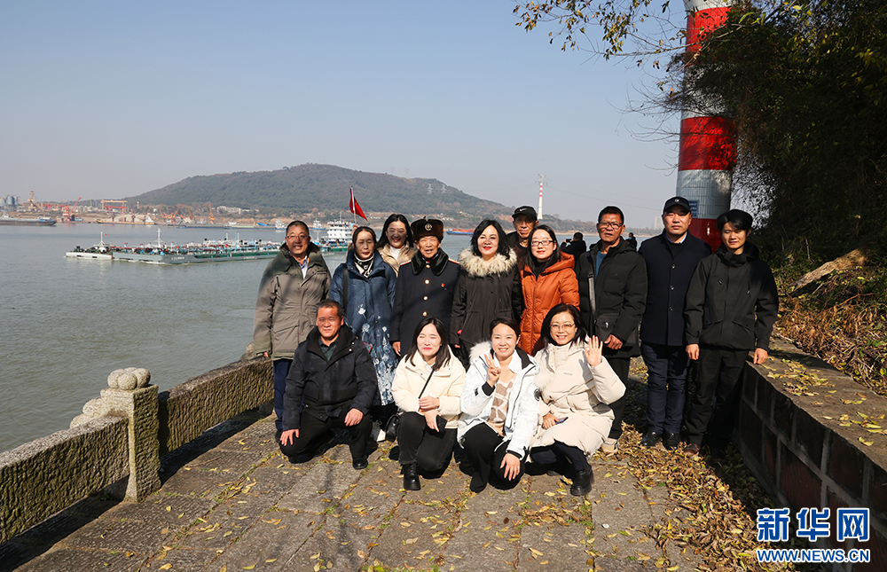 “中国网事·感动2023”年度人物参观江夏槐山矶驳岸合影留念。新华网连迅摄