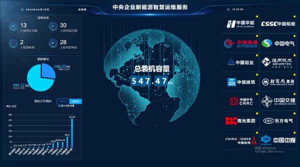 截至目前,在国务院国资委的组织推动下,平台已为13家非电力主营业务中央企业的30个新能源项目提供智慧运维服务,其中风电项目2个,光伏项目28个,总装机容量约54.75万千瓦,受到各服务单位的一致好评。2024年5月10日,“新能源智慧运维平台”品牌在第八届中国品牌日活动上亮相,展现了集团公司以高质量数字化赋能新能源高质量发展的最新成果。(供稿:中国华能)