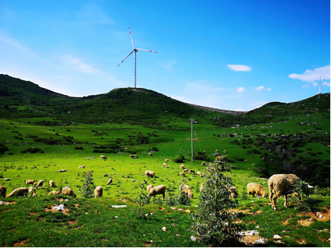 70公里外,贵州省单体规模最大的风电场——华能乌江源风电场198台风机迎风转动。该风场的并网结束了贵州威宁地区没有大电源支撑的历史,使得贵州电网结构布局更加合理。通过种植本土植被,风场内牛羊漫步随处可见,乌蒙草原的生态系统找到新的平衡,每一片叶子都闪耀着希望,每一寸土地都蓬勃着绿色的生命力。