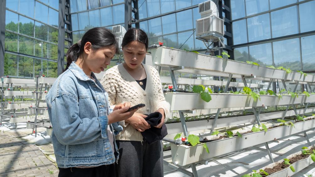 徐林艳是玻璃温室大棚的另一名管理员,她原本长期在浙江和广东等地打工,智能蔬菜园的建成让她实现了在家门口就业,不仅能挣到和打工差不多的收入,还能照顾年迈的双亲和两个分别上初中和幼儿园的孩子。