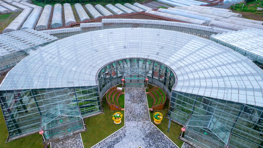 初夏时节农事忙。走进黄泥坡村,放眼占地1280亩的智能蔬菜园,西红柿、芹菜、葡萄等特色蔬果大棚整齐排列,生机盎然。