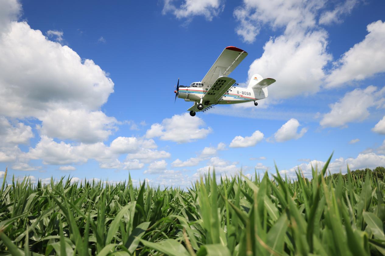 黑龙江垦区北大荒集团各农业生产单位的旱田航化作业陆续展开,以保障旱田作物健康生长。新华社发 钱泊羽 摄